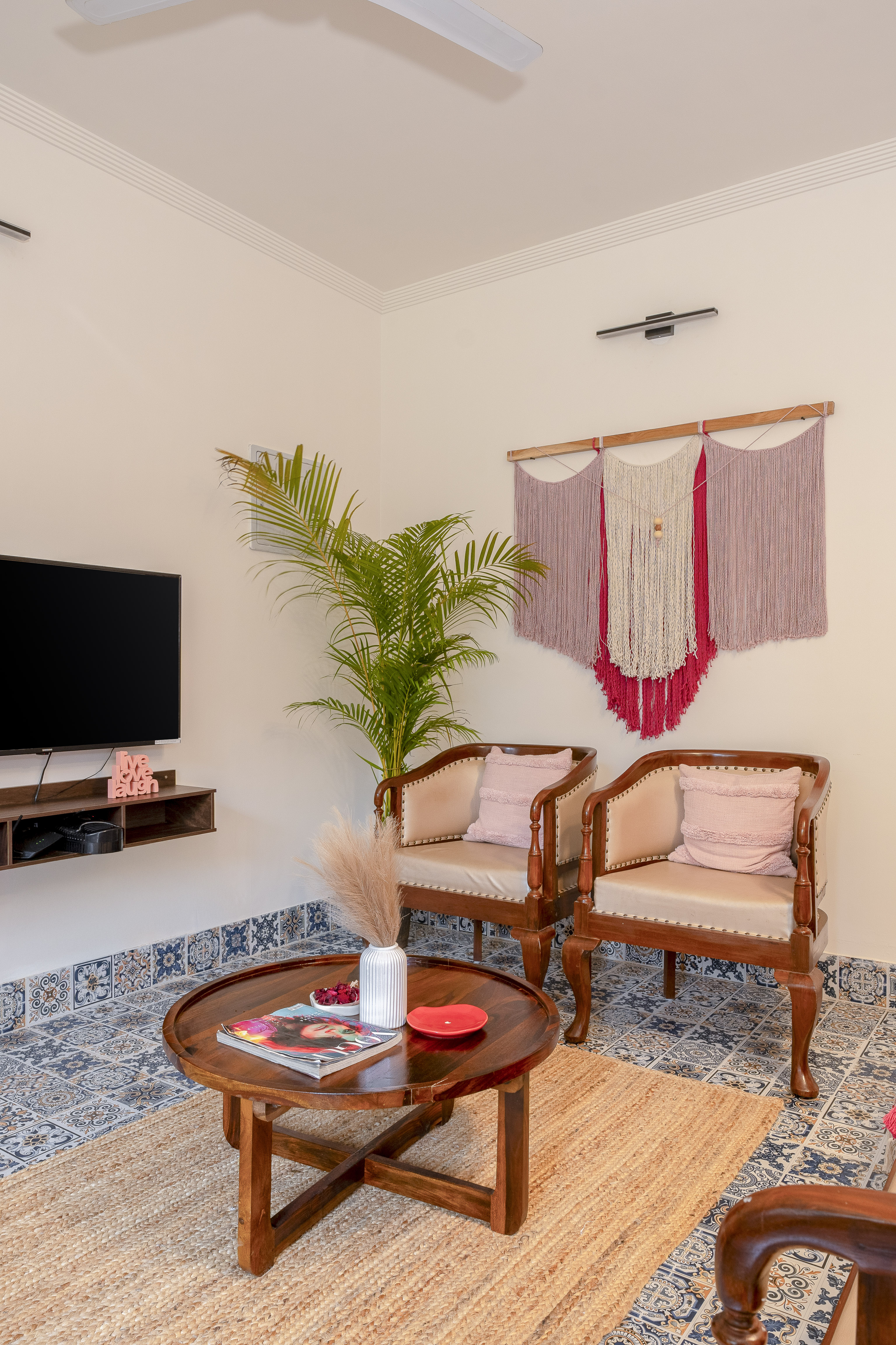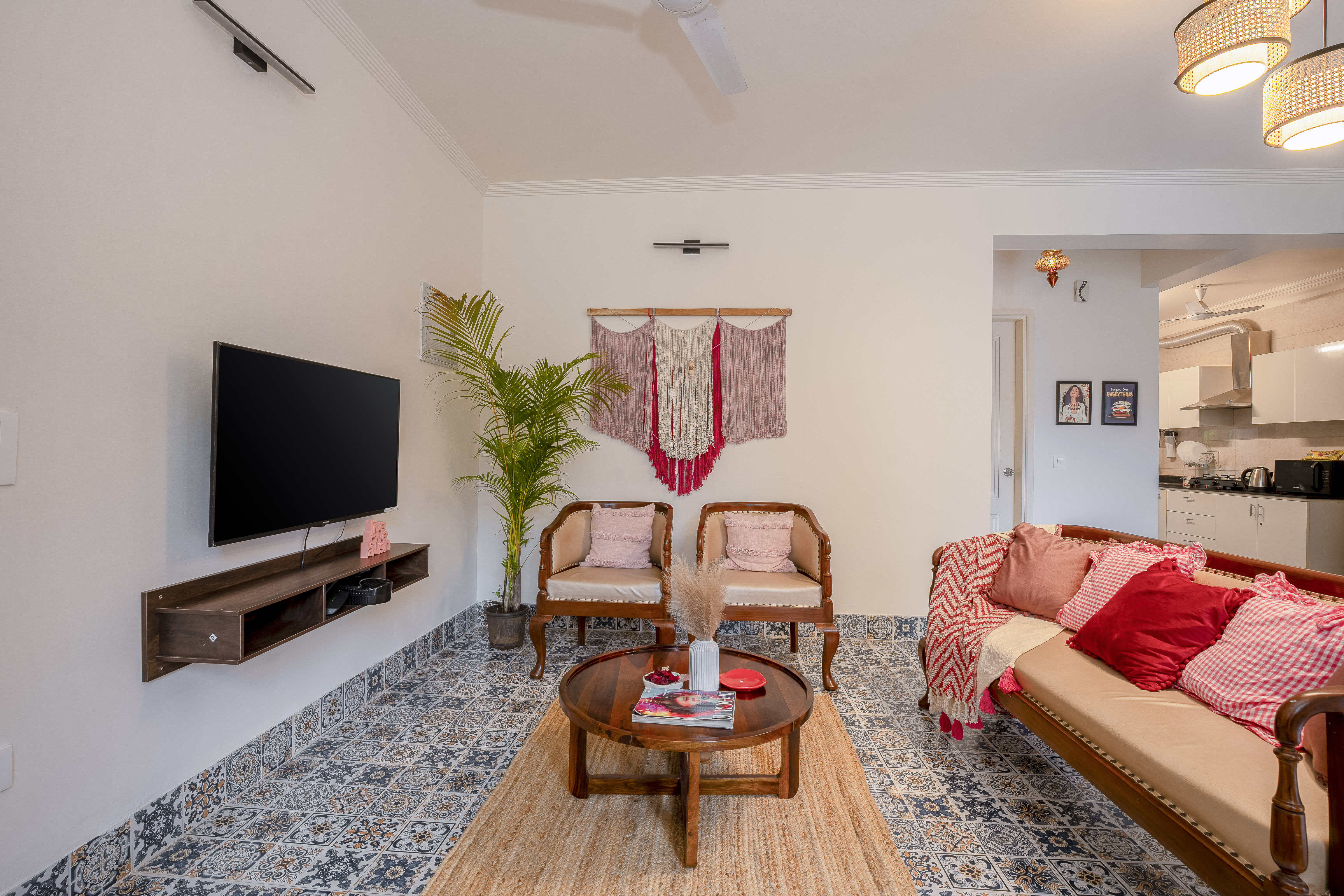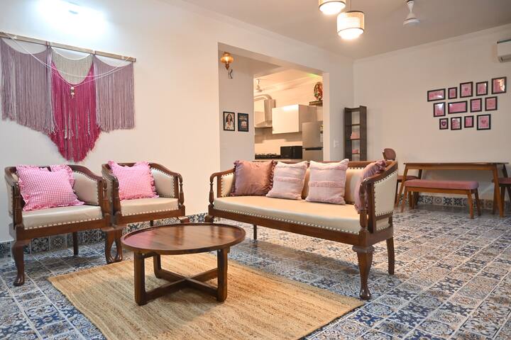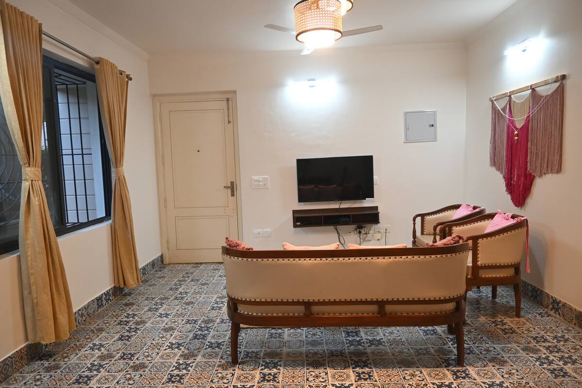 A modern, airy space with plush seating, Smart TV, and high-speed Wi-Fi. Perfect for relaxing, entertaining, or working, with bright natural light and a cozy, contemporary vibe.