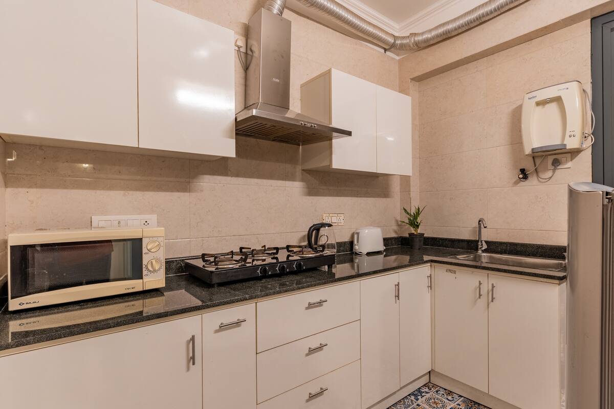 Fridge, microwave, induction stove