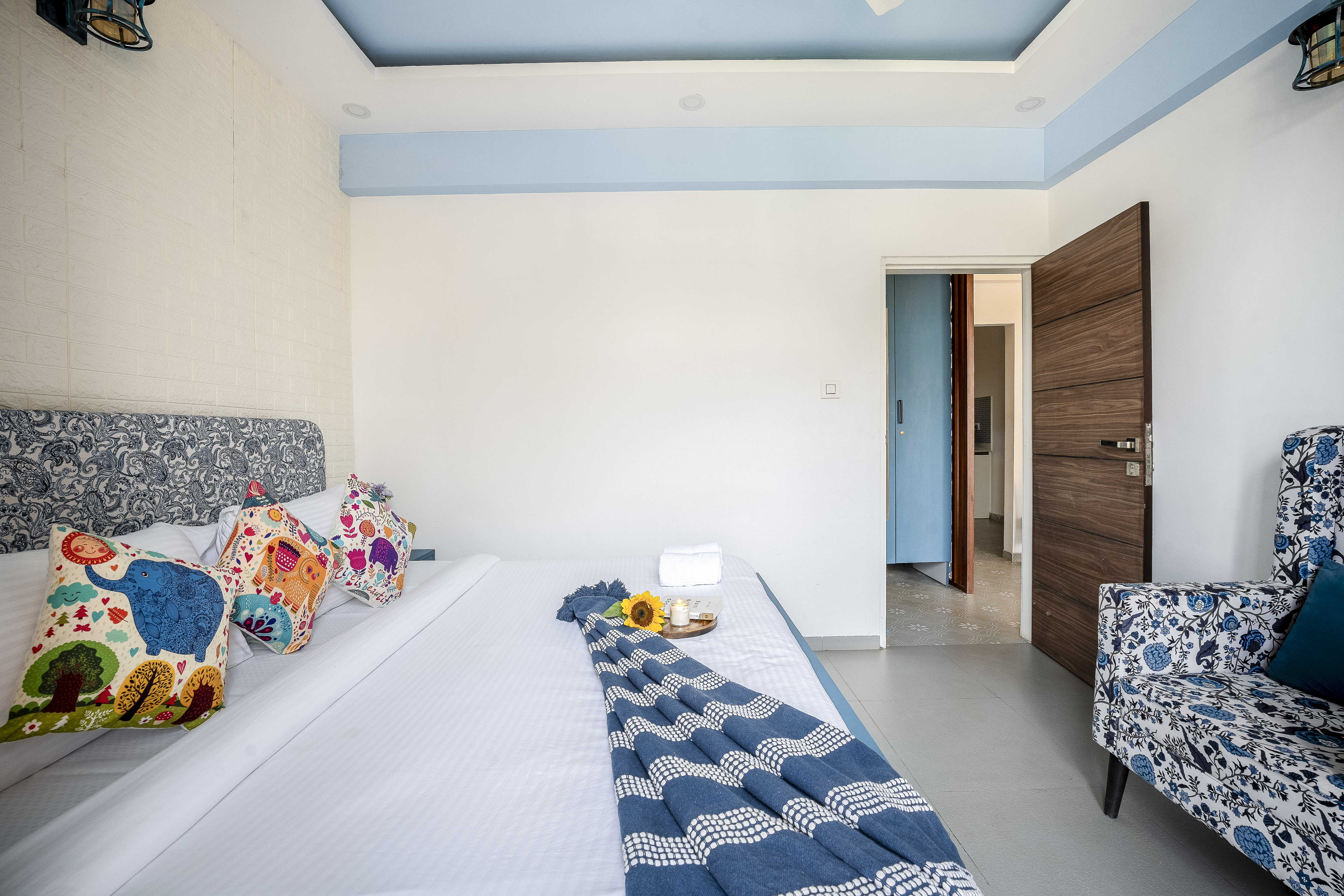 Fully equipped kitchen, flat-screen TV, high-speed Wi-Fi, washing machine, inverter backup (3–4 hrs), and extra mattress on request.